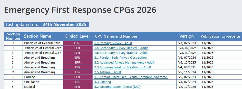 PHECC is pleased to announce the release of Clinical Practice Guidelines (CPGs) 2026 (8th Edition). CPGs are developed by the Medical Advisory Committee and recommended to Council for publication. This follows MAC review of CPGs or submissions from individuals, speciality groups and clinical programmes. The membership of MAC is available here.